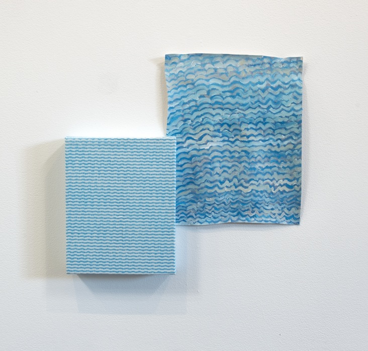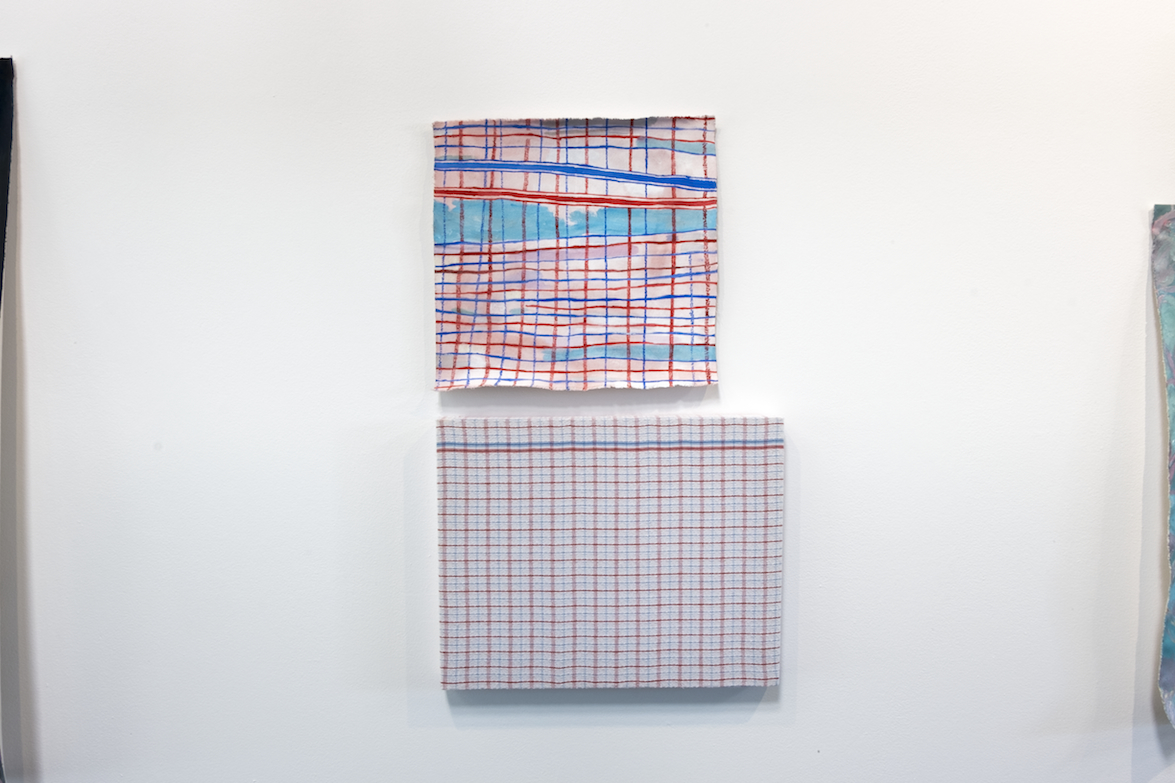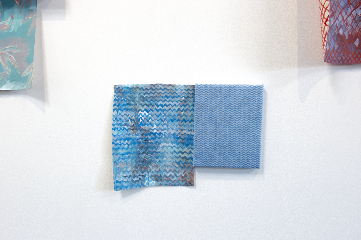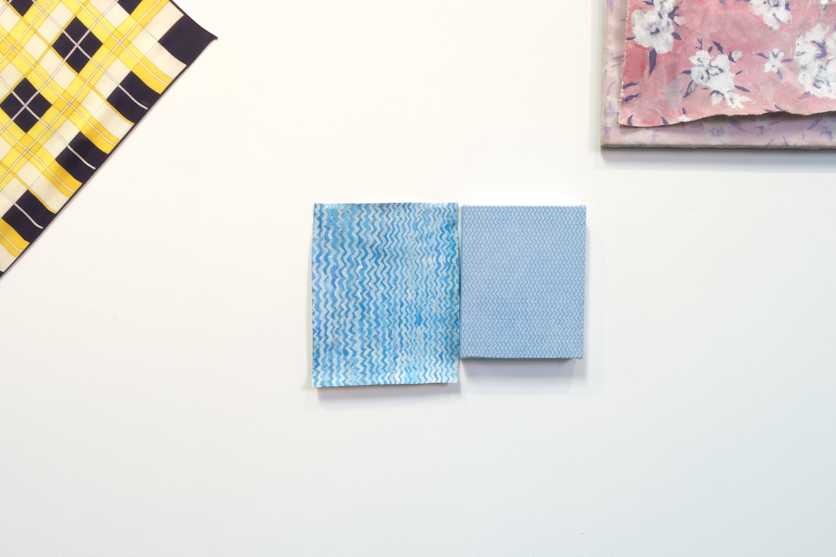 Pale Imitations continues Ida Lawrence’s interest in fabricating objects, images, and the stories behind them. Through fiction and subversion, she creates alternative histories for, and new interpretations of, the ordinary and everyday. In her recent practice, and while painting the patterned works in this exhibition, she has been thinking about the relationship between imperfection and expression, failure and beauty, what they “look like”, and how they are defined within and by different contexts. In Pale Imitations, Lawrence juxtaposes patterned paintings with similarly patterned mass-produced domestic objects to pose the questions: Which is “original”? And can one really be said to be inferior or superior to the other?