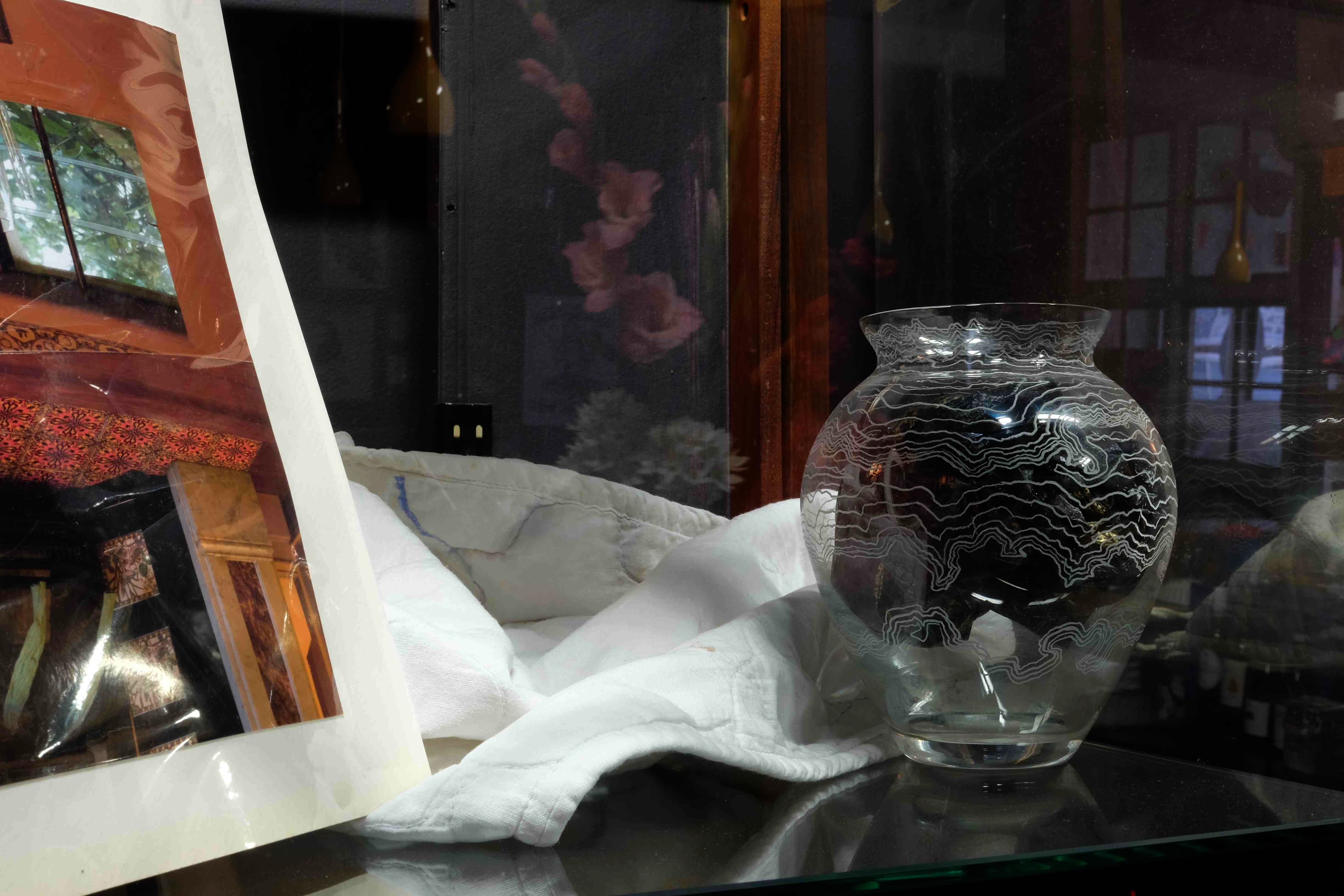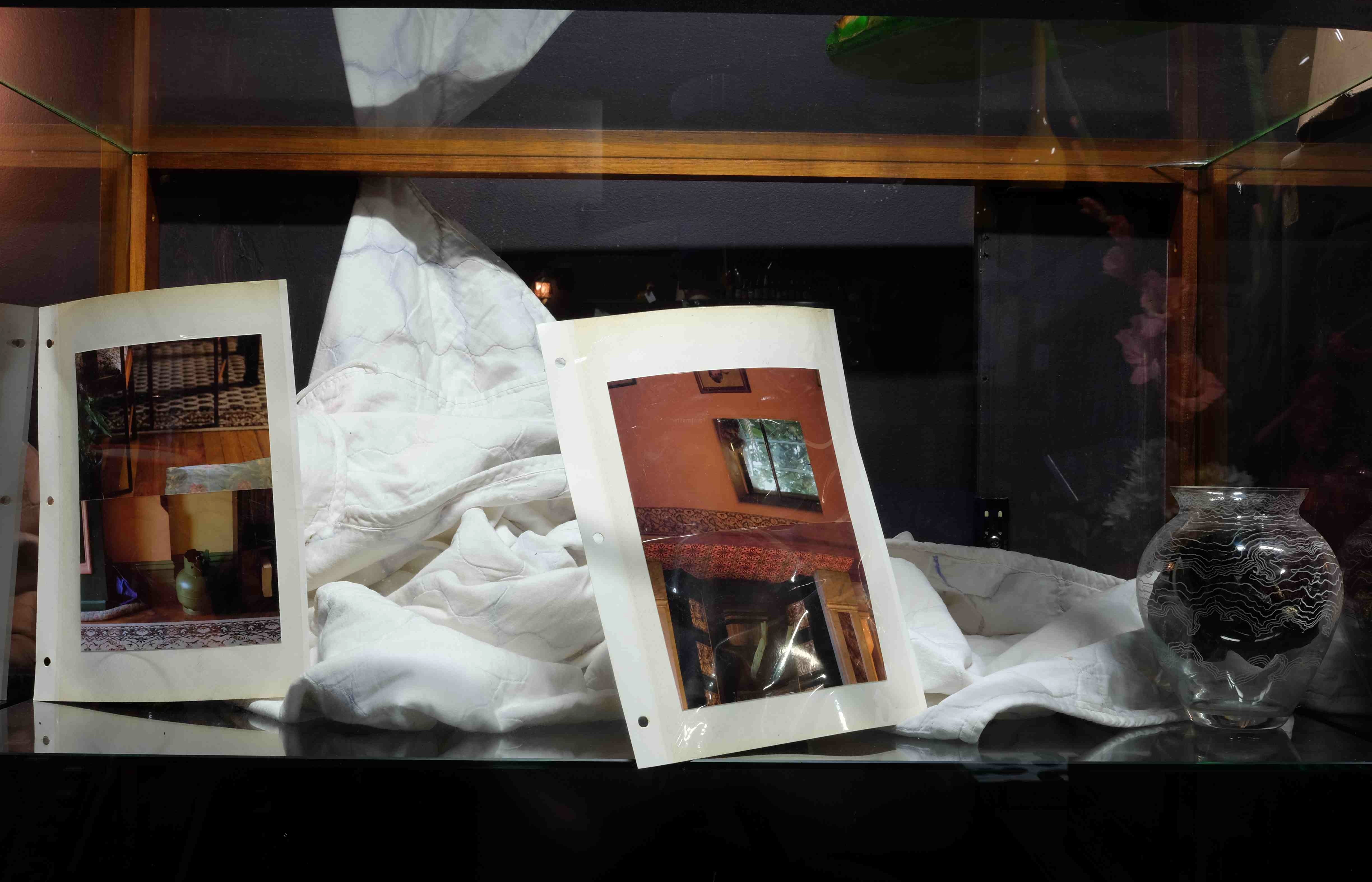 Travel Pillow (pillow case, pillow, acrylic, raffia, head-sized), Remains (bristled clay object), Still Good (screwdriver), Visitor Entertainers (unique photo album pages)