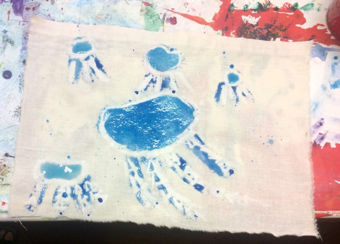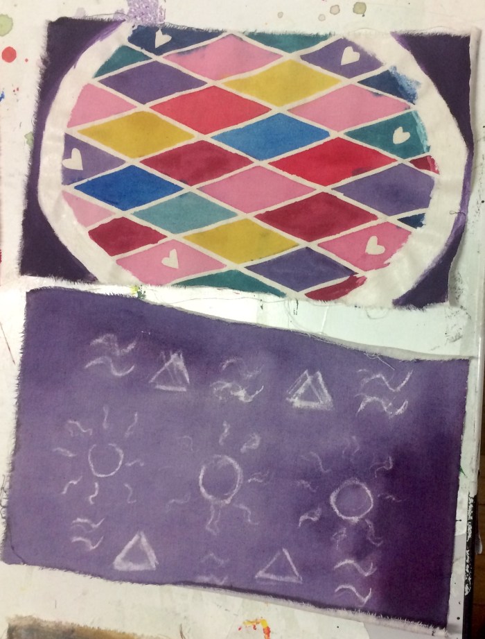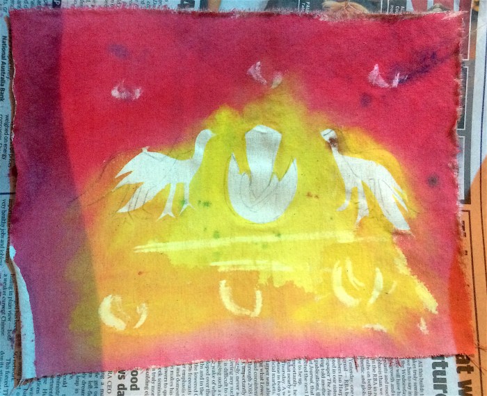 Inspired by traditional Indonesian batik motifs, symbols, patterns and resist processes, participants created their own textile design of personal significance, using alternative resist and colouring techniques, and based on a story from their weekend or the summer holidays.