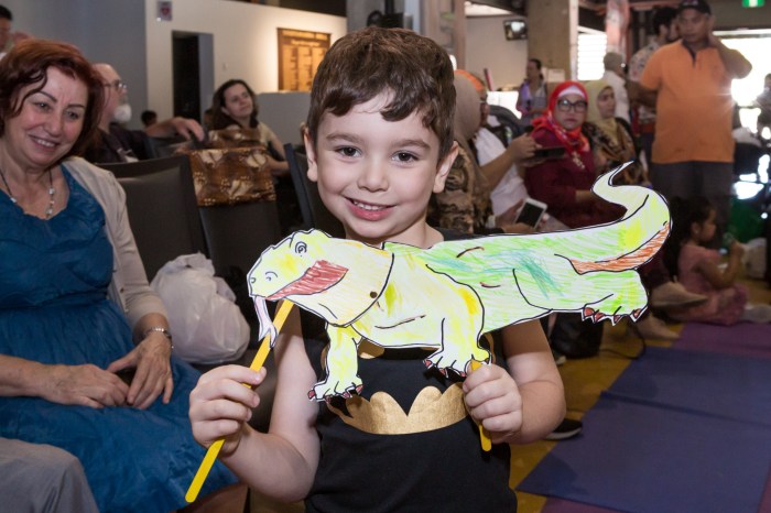 Participants made paper puppets of Indonesian and Australian animals, drawing inspiration from traditional puppets called wayang. Some participants made wild new creatures, combining features of Indonesian and Australian animals.