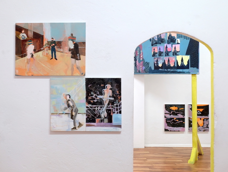 The duo show A bird in the grass is worth a thousand hearts sees Retramp re-vamped into a laboratory of play and possibility, in a reunion of sorts. Caitlin Hespe and Ida Lawrence are two artists who have been working apart from each other (most recently in Budapest and Berlin, respectively), though also in close contact. Through telepathic communication (or just regular phone contact, we cannot be sure) motifs merge and collide, and thematic encounters occur. In her drawings and paintings, Caitlin Hespe pairs images in surprising combinations through a new logic and sensibility. She makes leaps and links between associations and language and plays with the page as a space of illusions. Ida Lawrence’s canvases tell stories of mishaps, (mis)understanding and (dis)connection. Set between Germany, Indonesia and Australia — her homes at different times — her narrative paintings reflect recent observations, delve into distant memories, and chart her attempts to make sense of the world.