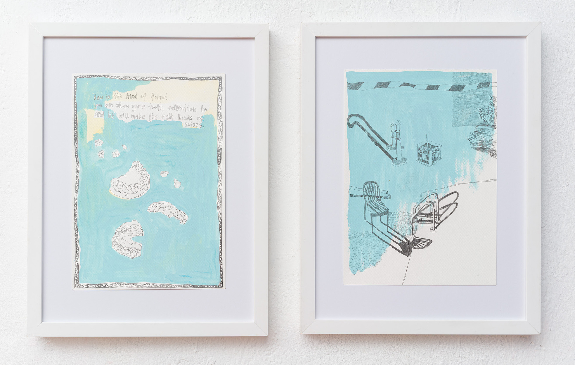 Right: Wylie’s with Huw 2019, gouache & pencil on acid free watercolour paper, 29.7 cm x 21 cm.