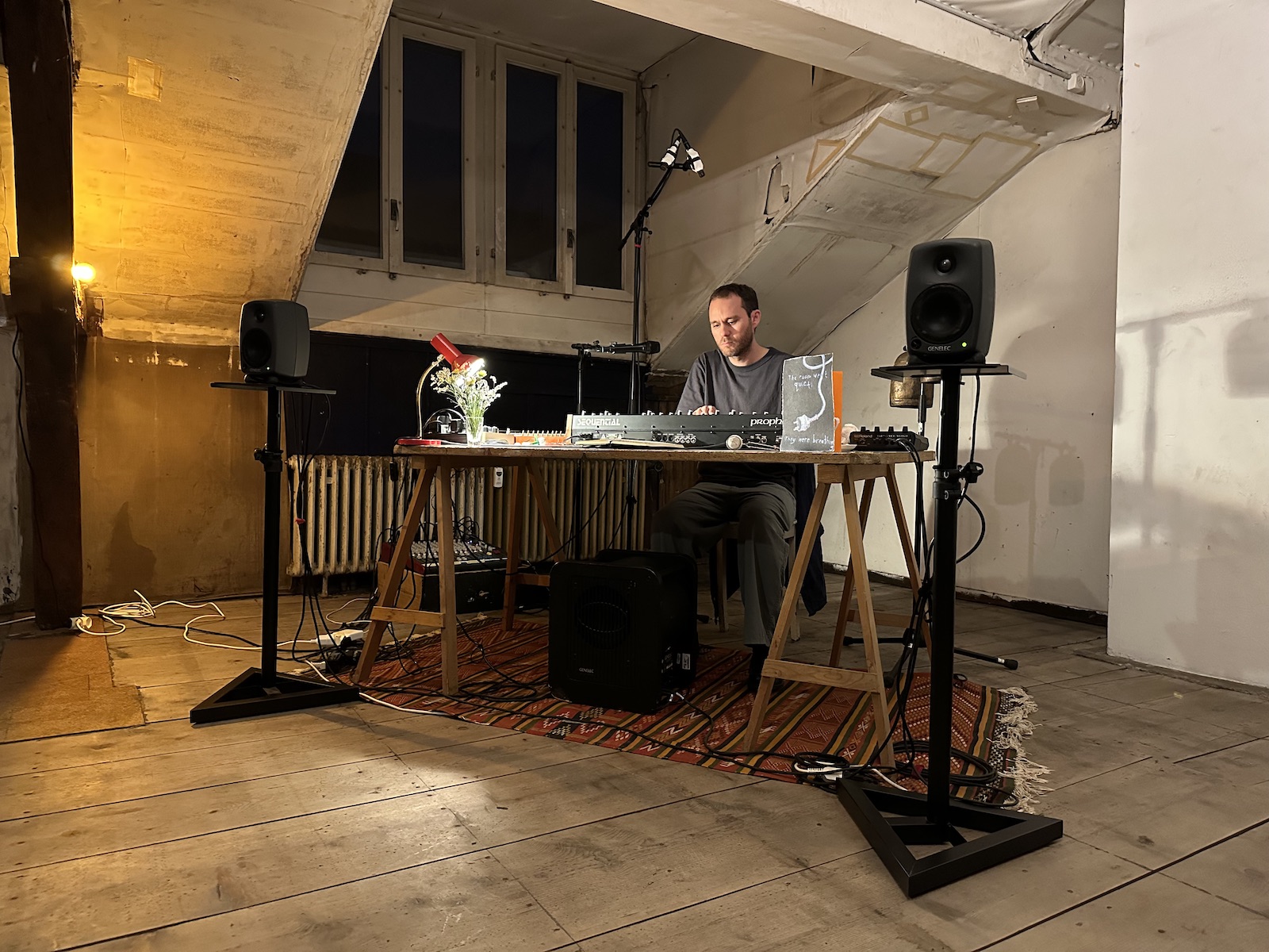 We are very excited to announce an evening at Hotti with Berlin based artists Khaled Kurbeh and Ida Lawrence on Saturday September 6th. Khaled will interpret his new album Likulli Fadāin Eqāéh / (لكلّ فضاءٍ إيقاعه) / (to each space its own rhythm), recently released on Research Records, alongside an intervention by Ida.