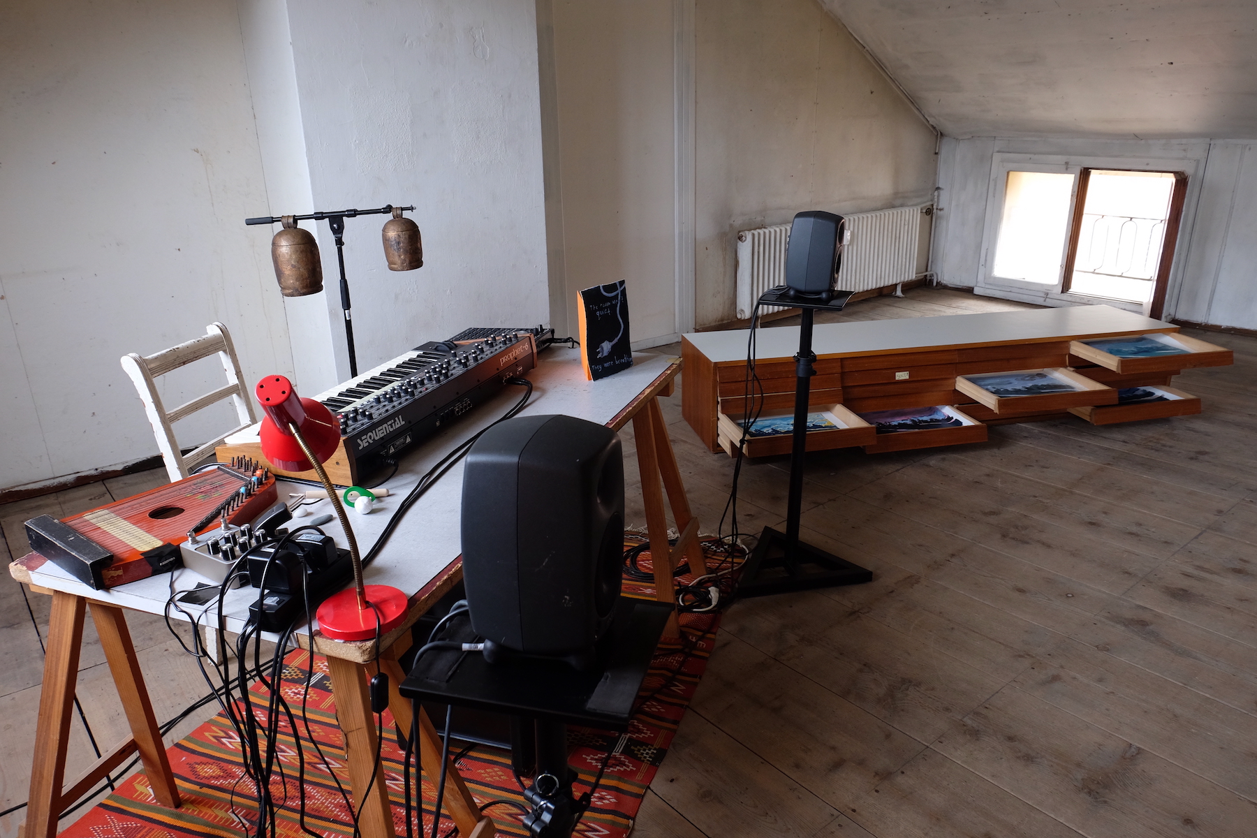Khaled’s soundscapes find a counterpart in Ida’s landscape variation paintings; together they trace a path and invite us to wander with them, to notice, and to celebrate the beauty in the everyday. The cracking of sunflower seeds, the chirping of nearby swallows, plucked strings and shivering bells are delicate quantum fissures that surprise us along what Khaled describes as an “itinerary”. The album doesn’t suggest a destination to be reached, but rather evokes something cyclical, echoing the passing days in Ida’s paintings.