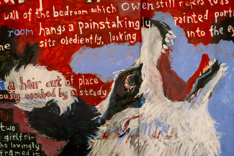 Ida Lawrence, A Bigger Misha (detail) 2020-2025, acrylic, cut-outs and collage on 200gsm Fabriano acid free paper, 245 cm x 290 cm; timber installation, 245 cm x 350 cm x 490 cm. Photo: Frank Freitag.